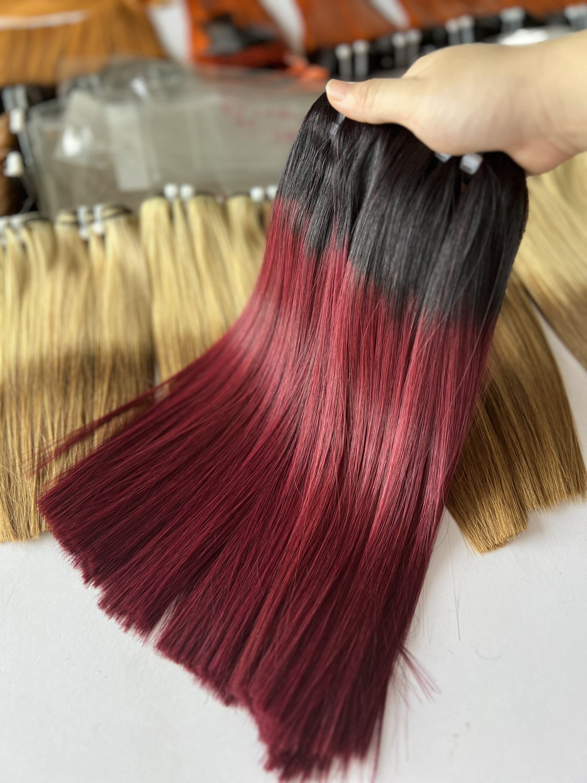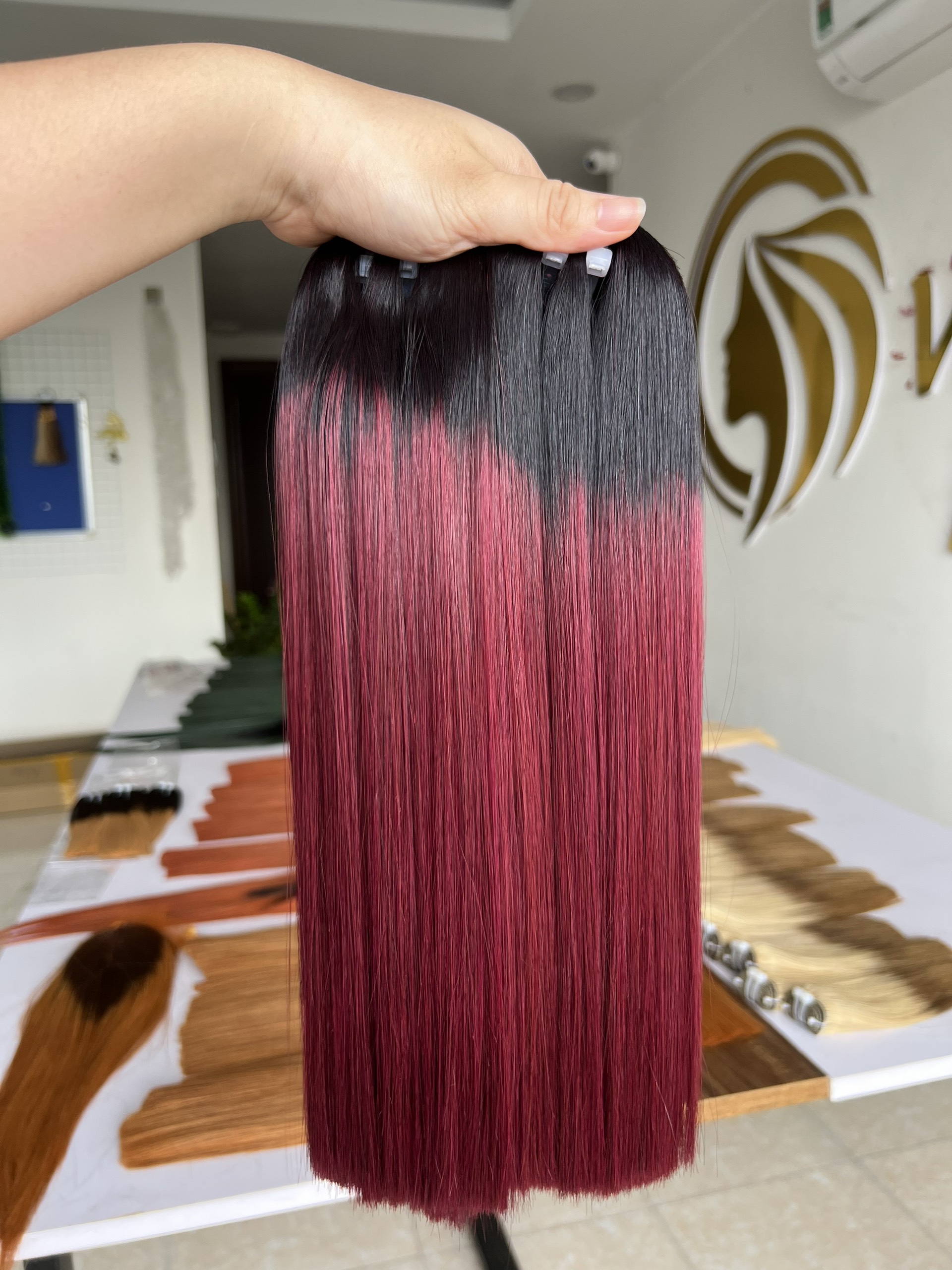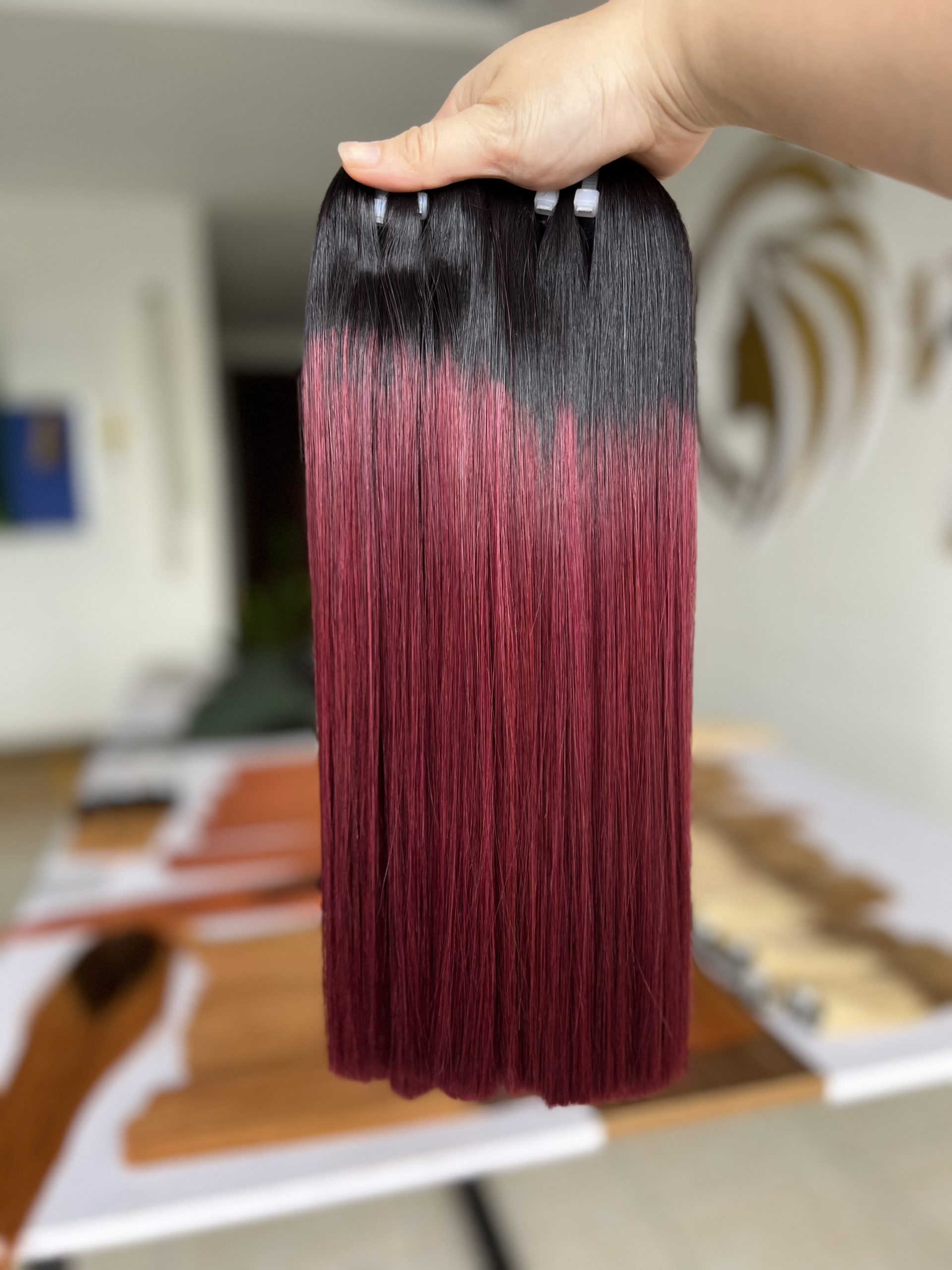 Ombre Wine V15 Colored Hair Super Double VIP Bone Straight Vietnamese Human Hair