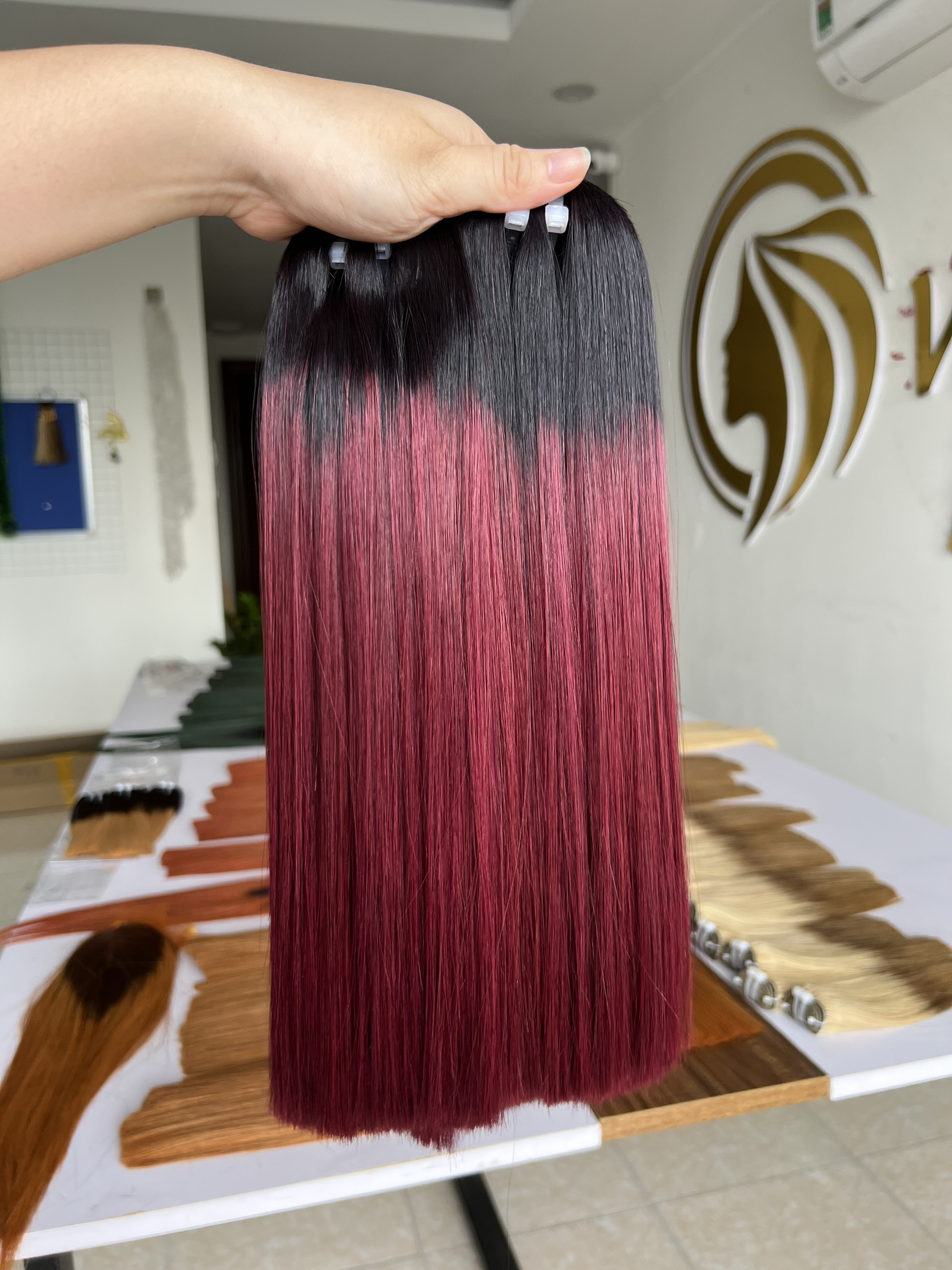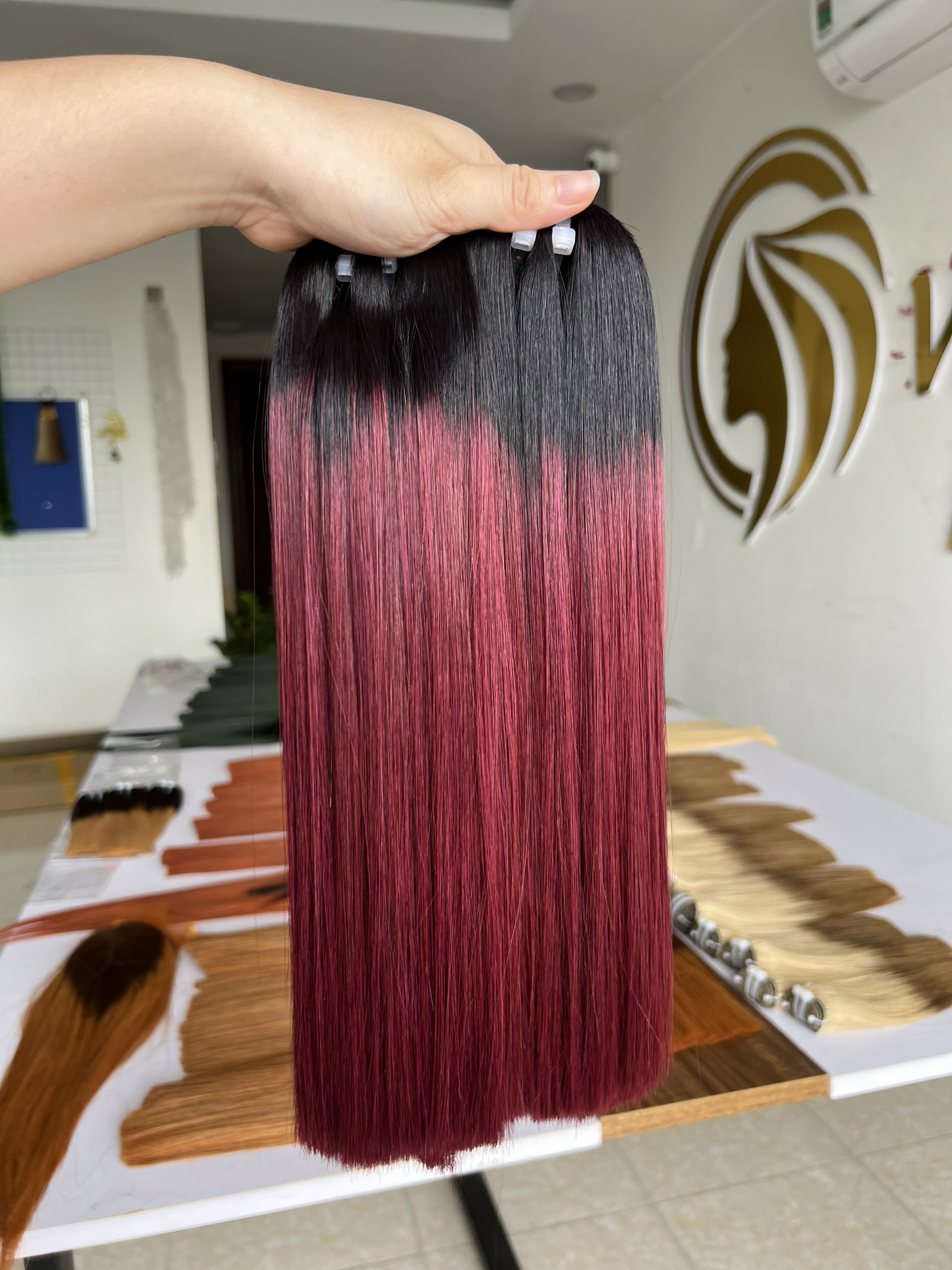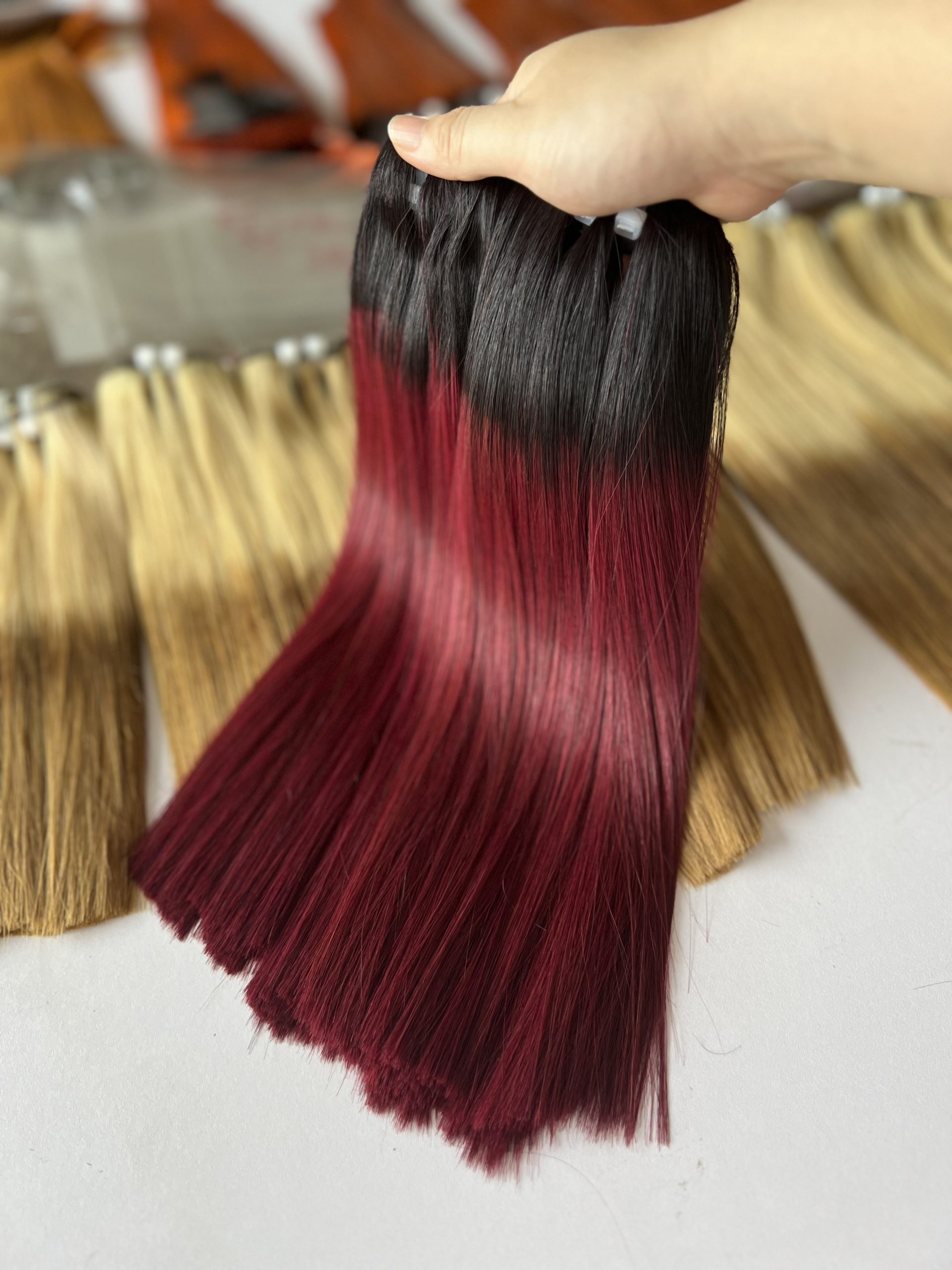 Ombre Wine V15 Colored Hair Super Double VIP Bone Straight Vietnamese Human Hair